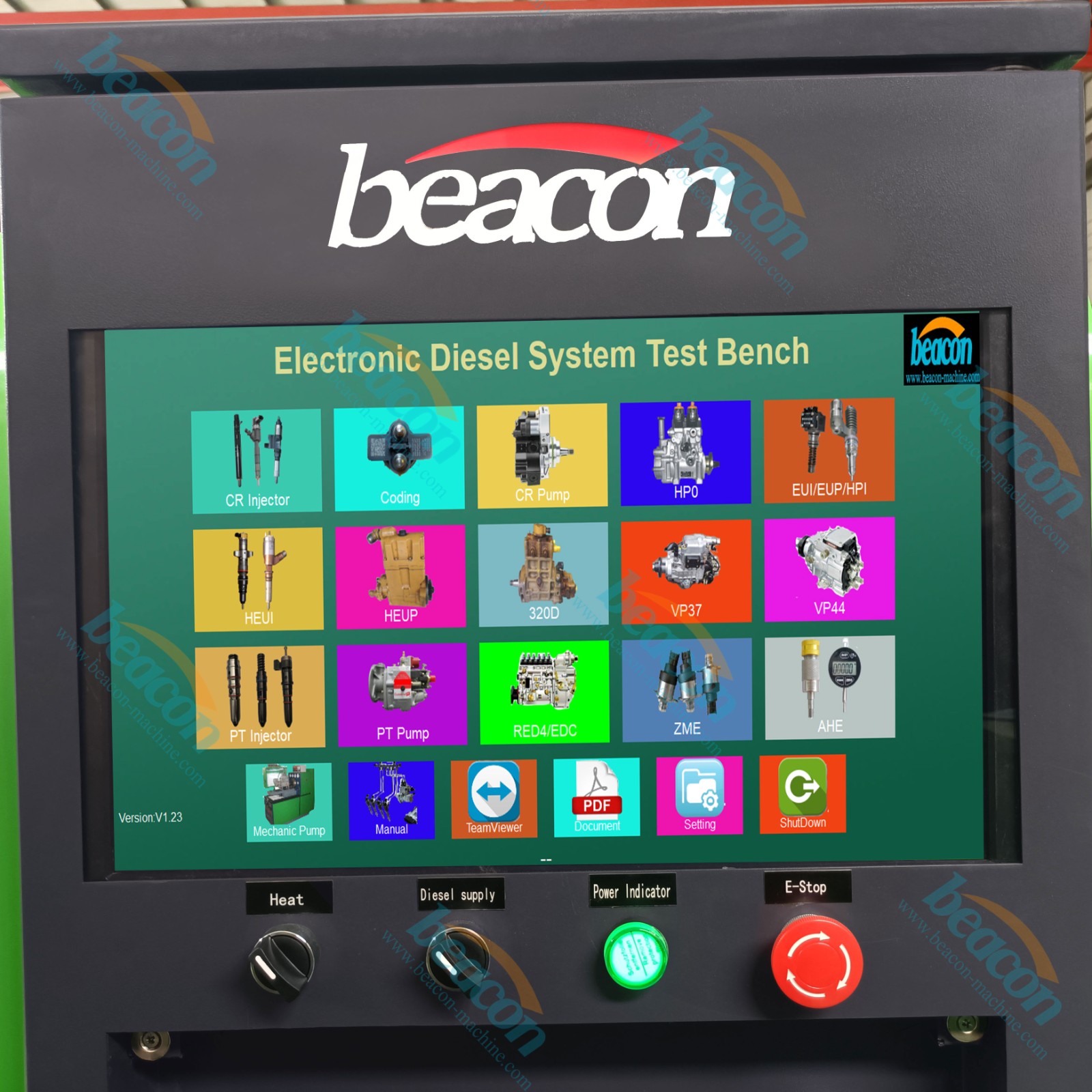 The CR819 is a high-performance Electronic Diesel System Test Bench designed for comprehensive testing of EUI, EUP, HEUI, and Common Rail systems. Powered by a standard 11KW motor, it provides a wide adjustable speed range of 0-4000 r/min and precise fuel pressure control up to 2400bar.